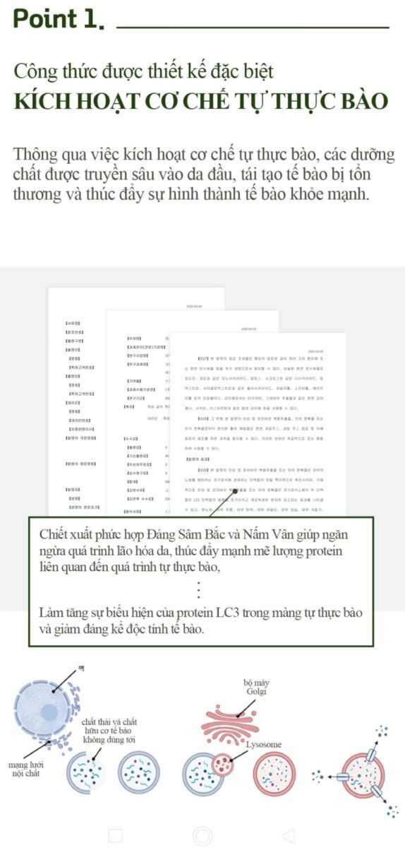 Chứa chiết xuất Đảng Sâm Bắc và nấm Vân Chi giúp chống oxy hóa và dưỡng trắng da. 5 loại peptide giúp kích hoạt các nhân tố tăng trưởng trong da. Ứng dụng công nghệ Liposome giúp dưỡng chất thẩm thấu sâu.